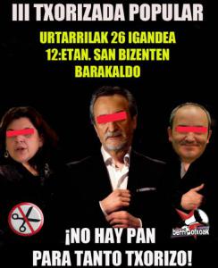 Esta mañana se han preparado, y repartido, decenas de pinchos y ristras de chorizo contra los recortes sociales. También se ha entregado un lote de chorizos en el registro municipal del Ayuntamiento de Barakaldo. Hay que tener en cuenta que la Asamblea General de la ONU proclamó el día de hoy, 9 de diciembre, como “Día Internacional contra la Corrupción”.