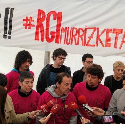 Ayer por la mañana las diferentes organizaciones de la sociedad civil: colectivos sociales, sindicatos y las redes para la inclusión social han realizado una comparecencia conjunta para… Por un lado, mostrar su solidaridad con las personas en huelga de hambre contra el recorte de la RGI; y por otro, emplazar públicamente al Lehendekari Iñigo Urkullu a revertir su política de recortes; y tener un dialogo entorno al sistema de protección vasco. Ante el intento de reforma de la “Ley 18/2008 de 23 de diciembre para la Garantía de Ingresos y para la Inclusión Social”, se debe escuchar a la totalidad de entidades sociales.
