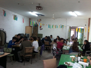 DOMINGO EN CASA DE TODAS. Como veis en la fotos, la comida en Casa de Todas era una acción de solidaridad para con las habitantes de las vías, de la comunidad peruana; ellas necesitan dinero para asistir a la Escuelita Trashumante de septiembre. Para ello cocinan pollos con ensalada sabrosísimos, que vendían a cincuenta pesos. Durante la comida, Javi cierra proyectos y deseos con Yanina, lo mismo que hacen Mariana y Yanina. Una se muere de envidia, por lo que se plantean, pero lo gestiona como puede. Tras la comida, a comprar facturas y tomar mate en casa de Morirá que esta hecha una jovenzuela. Para mas tarde irnos a un Cine, a visualizar la película Gloria, que nos encantó.